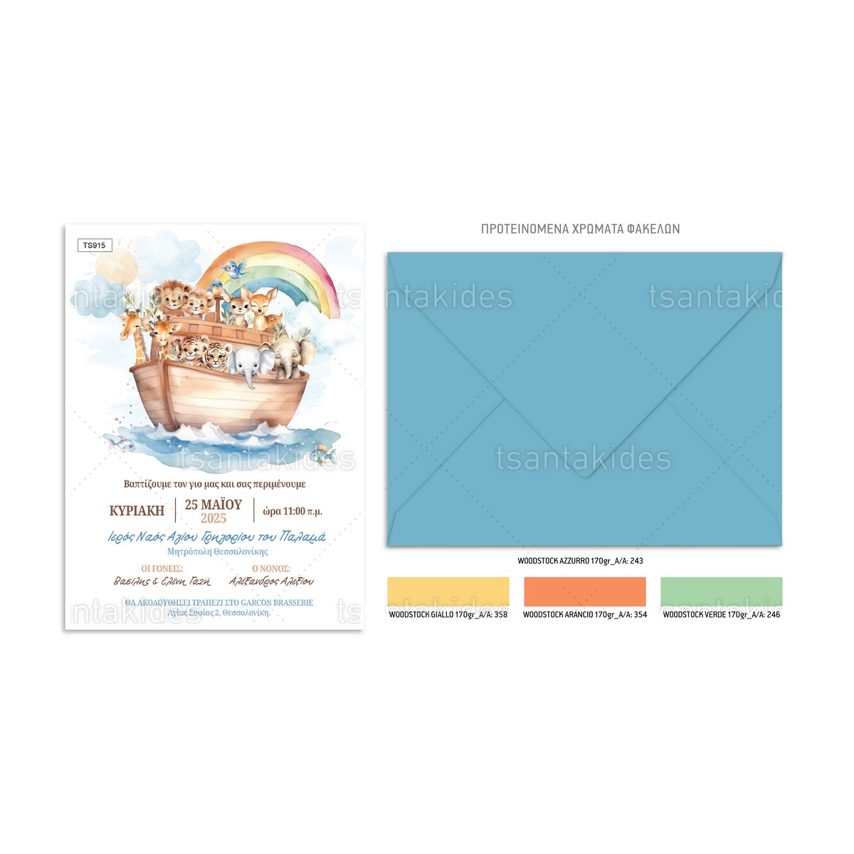 Το προσκλητήριο διαθέτει φάκελο διάστασης 15x22cm σε χαρτί της επιλογής σας από τους αναγραφόμενους κωδικούς.