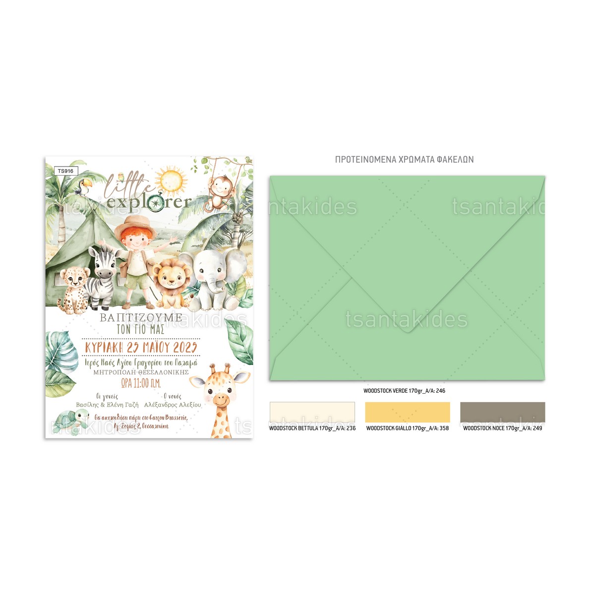 Το προσκλητήριο διαθέτει φάκελο διάστασης 15x22cm σε χαρτί της επιλογής σας από τους αναγραφόμενους κωδικούς.
