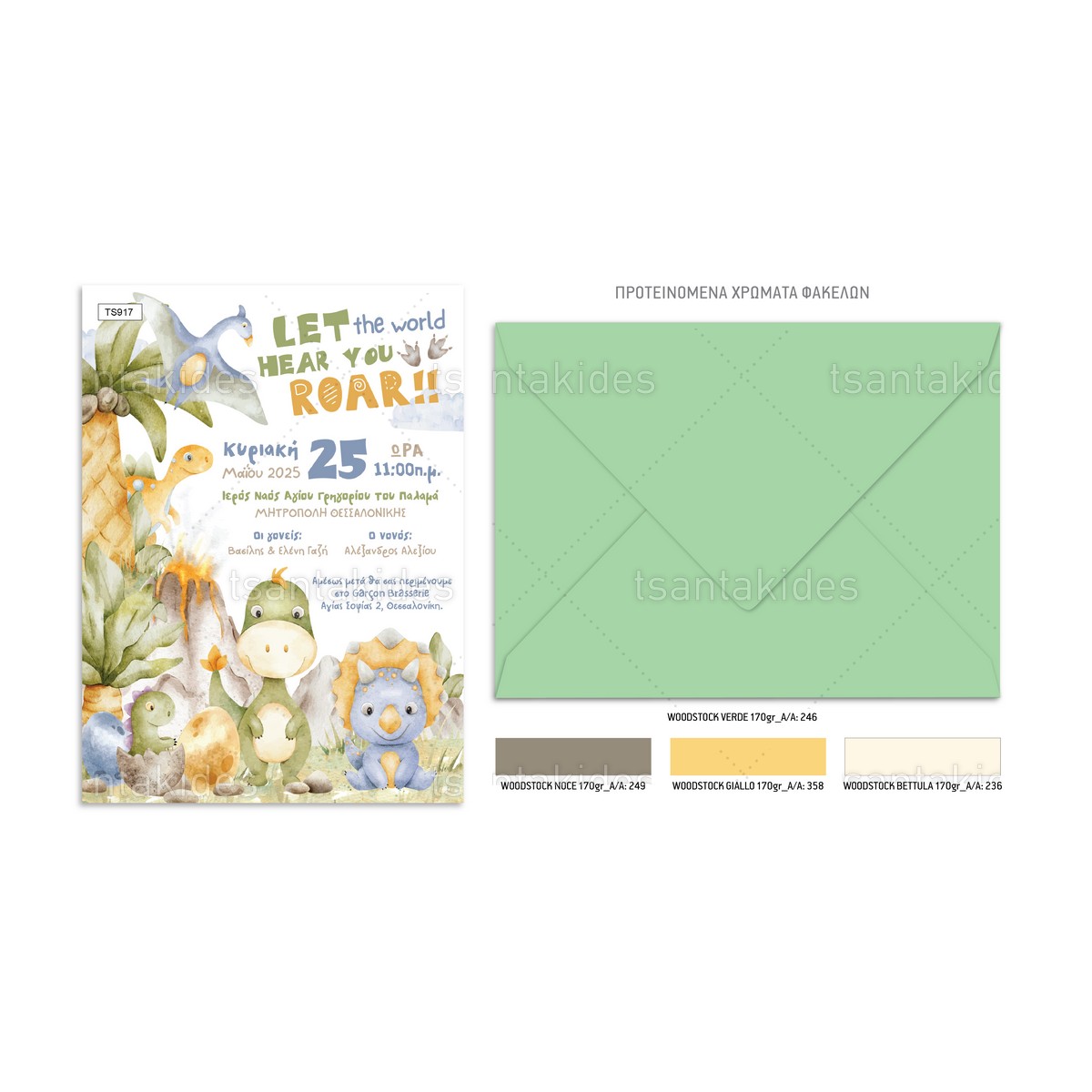 Το προσκλητήριο διαθέτει φάκελο διάστασης 15x22cm σε χαρτί της επιλογής σας από τους αναγραφόμενους κωδικούς.