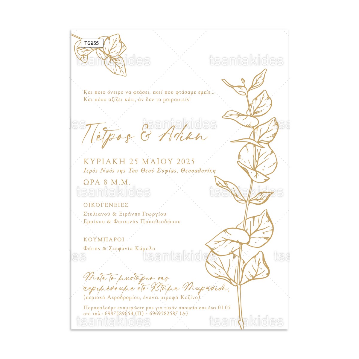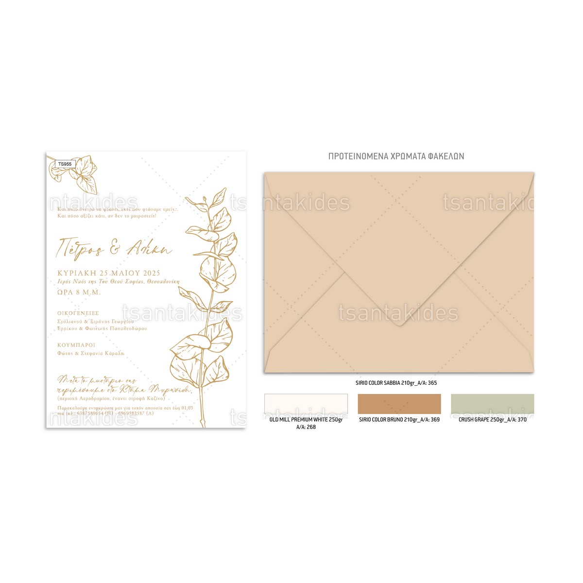 H κάρτα του προσκλητηρίου είναι τυπωμένη σε λευκό ματ χαρτί 250γρ.
