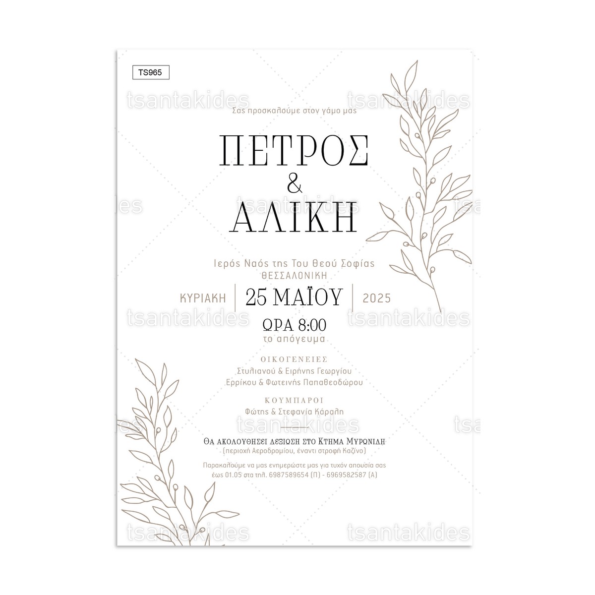 H κάρτα του προσκλητηρίου είναι τυπωμένη σε λευκό ματ χαρτί 250γρ.