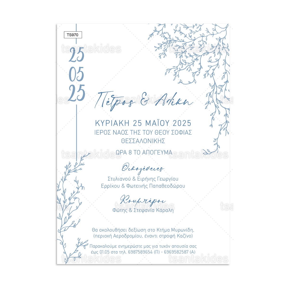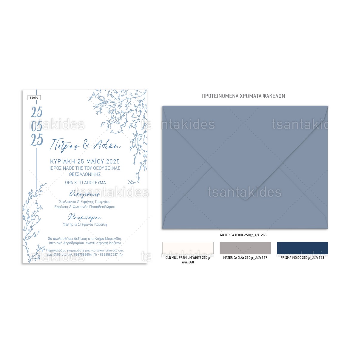 H κάρτα του προσκλητηρίου είναι τυπωμένη σε λευκό ματ χαρτί 250γρ.