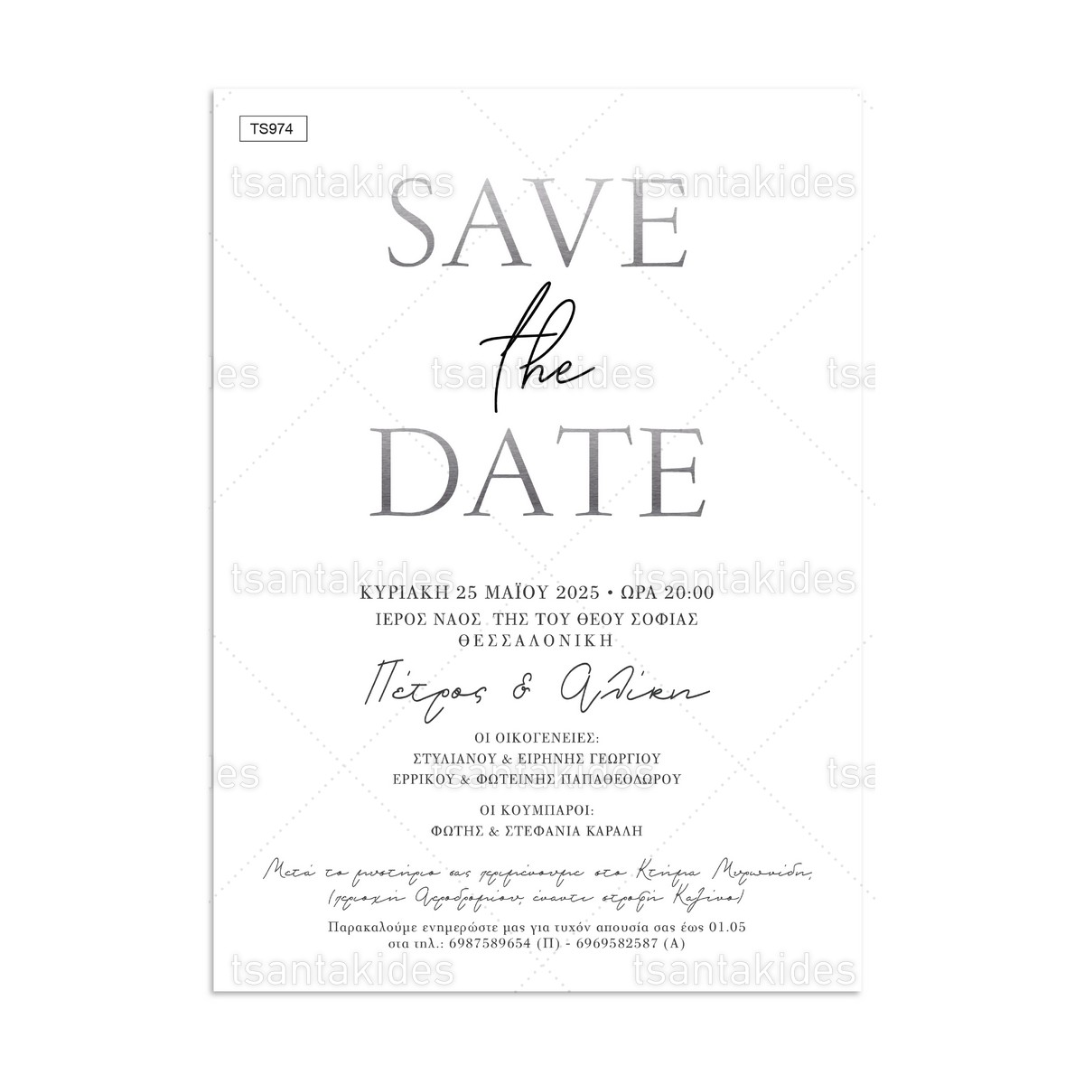 H κάρτα του προσκλητηρίου είναι τυπωμένη σε λευκό ματ χαρτί 250γρ.