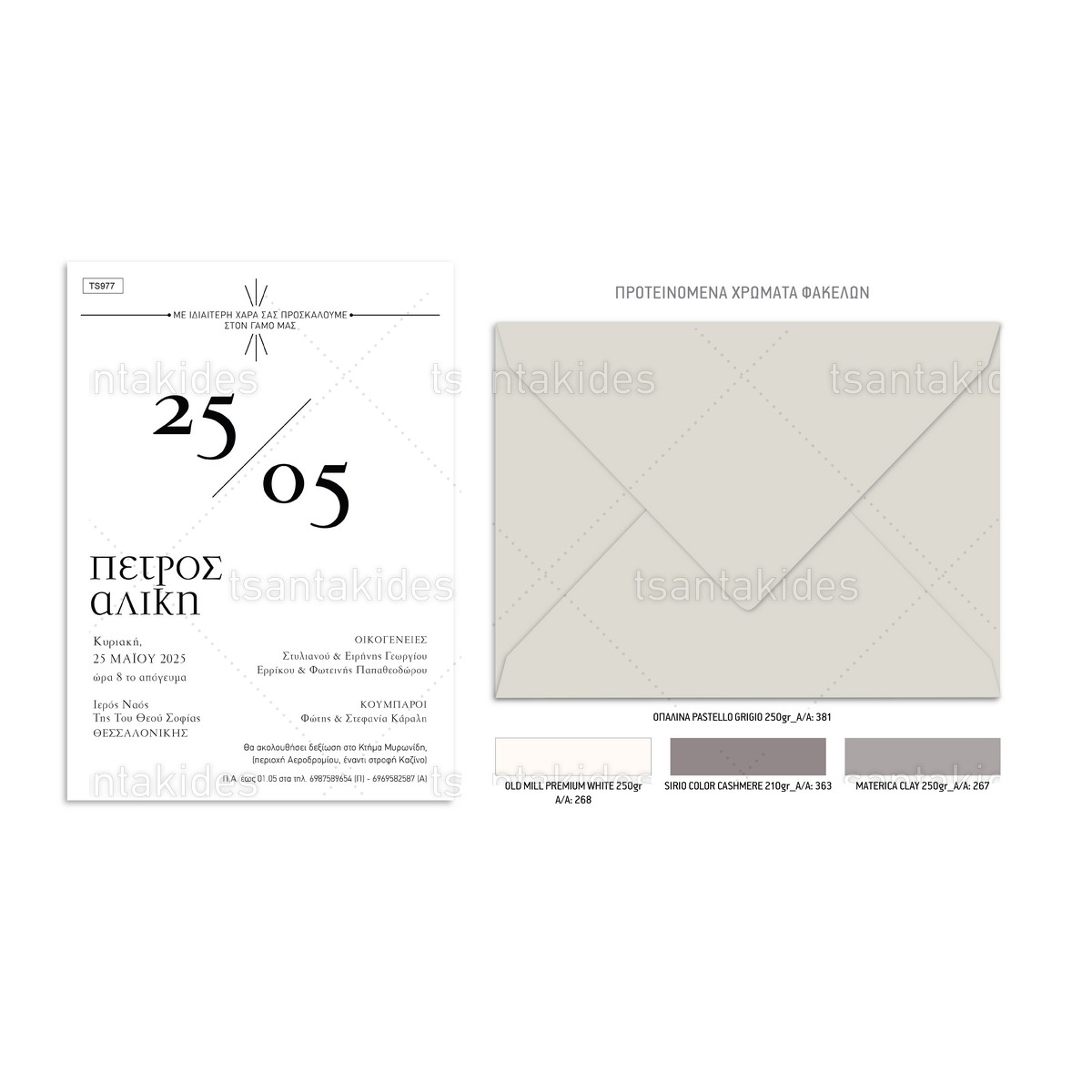 Η τιμή αφορά 1 τεμάχιο προσκλητήριου με φάκελο μαζί.