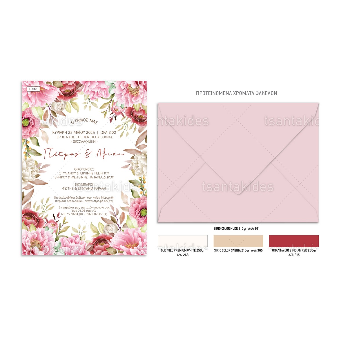 Το προσκλητήριο διαθέτει φάκελο διάστασης 15x22cm σε χαρτί της επιλογής σας από τους αναγραφόμενους κωδικούς.