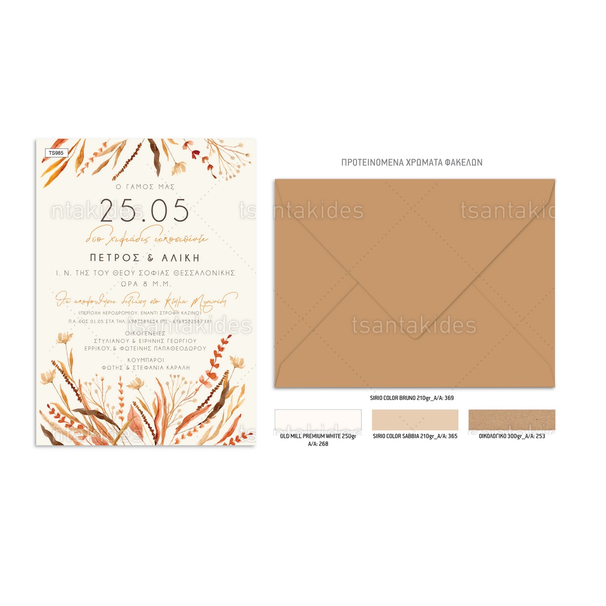 Το προσκλητήριο διαθέτει φάκελο διάστασης 15x22cm σε χαρτί της επιλογής σας από τους αναγραφόμενους κωδικούς.