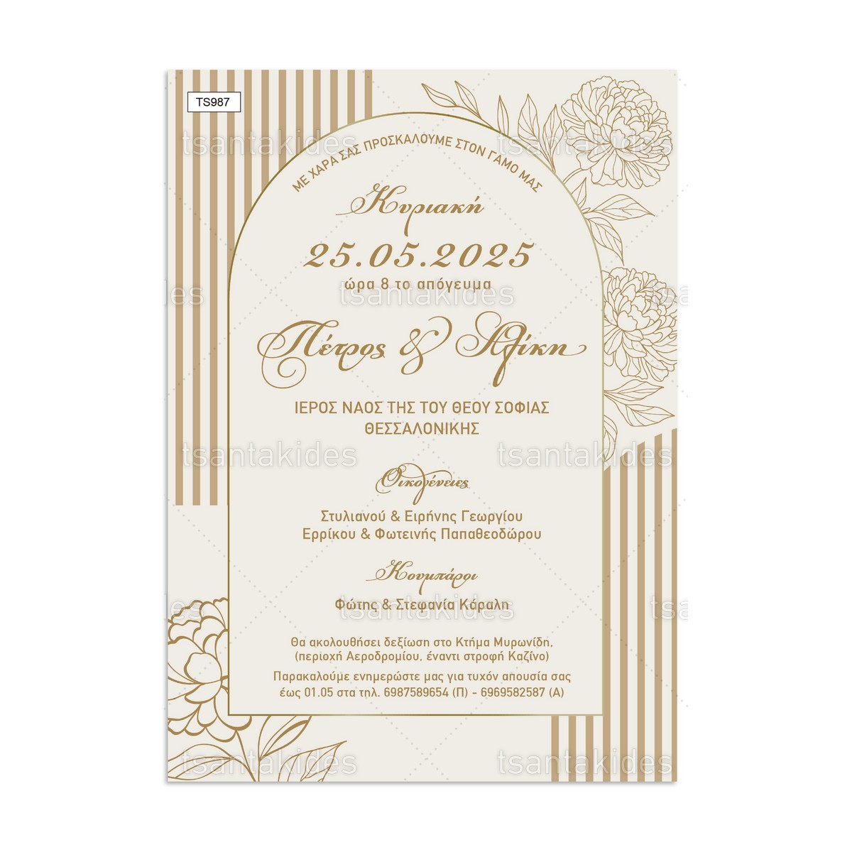 H κάρτα του προσκλητηρίου είναι τυπωμένη σε λευκό ματ χαρτί 250γρ.