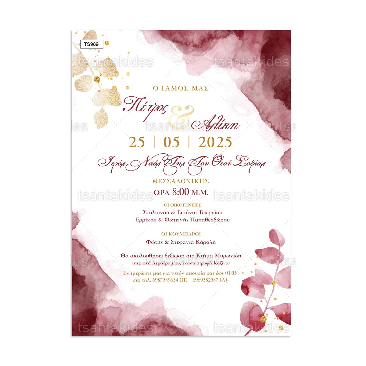 H κάρτα του προσκλητηρίου είναι τυπωμένη σε λευκό ματ χαρτί 250γρ.