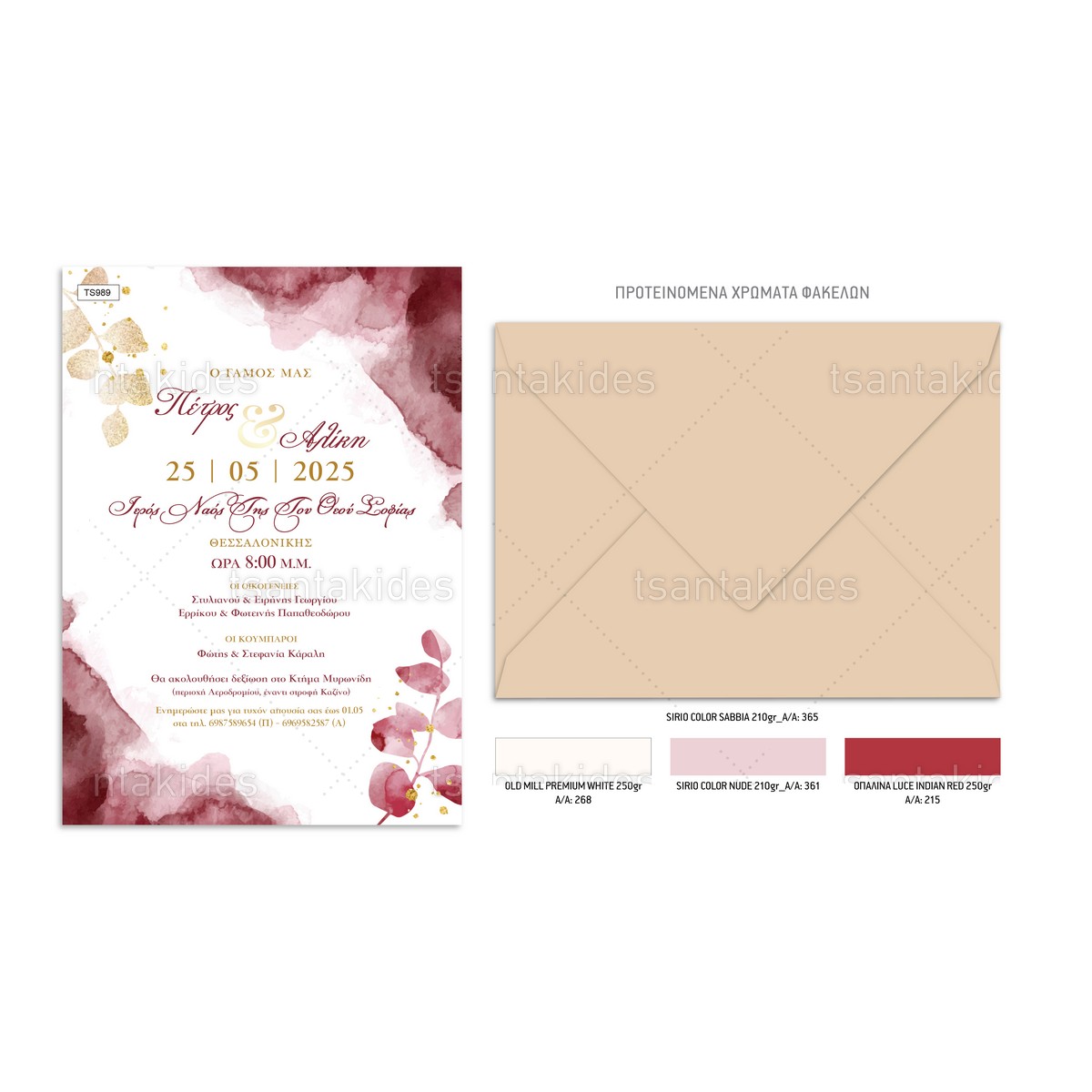 Το προσκλητήριο διαθέτει φάκελο διάστασης 15x22cm σε χαρτί της επιλογής σας από τους αναγραφόμενους κωδικούς.