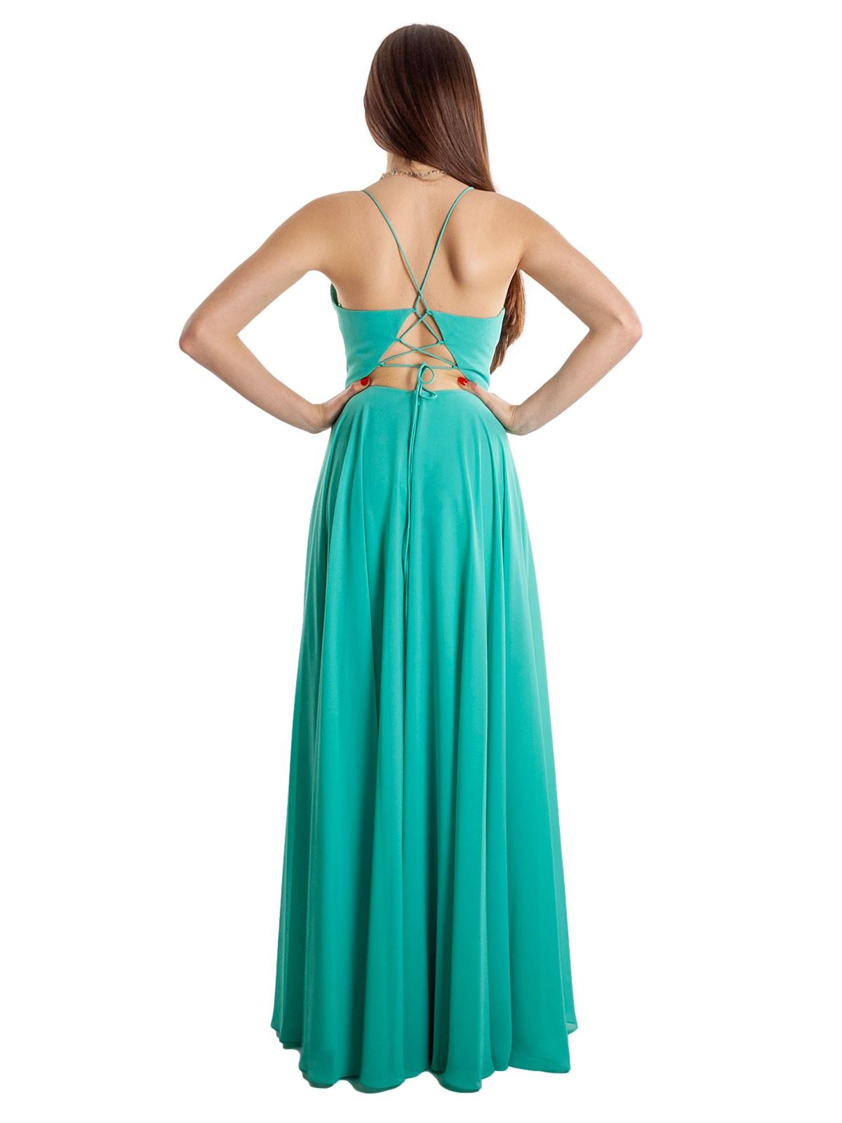 Διαθέτει εφαρμοστό μπούστο και φούστα.